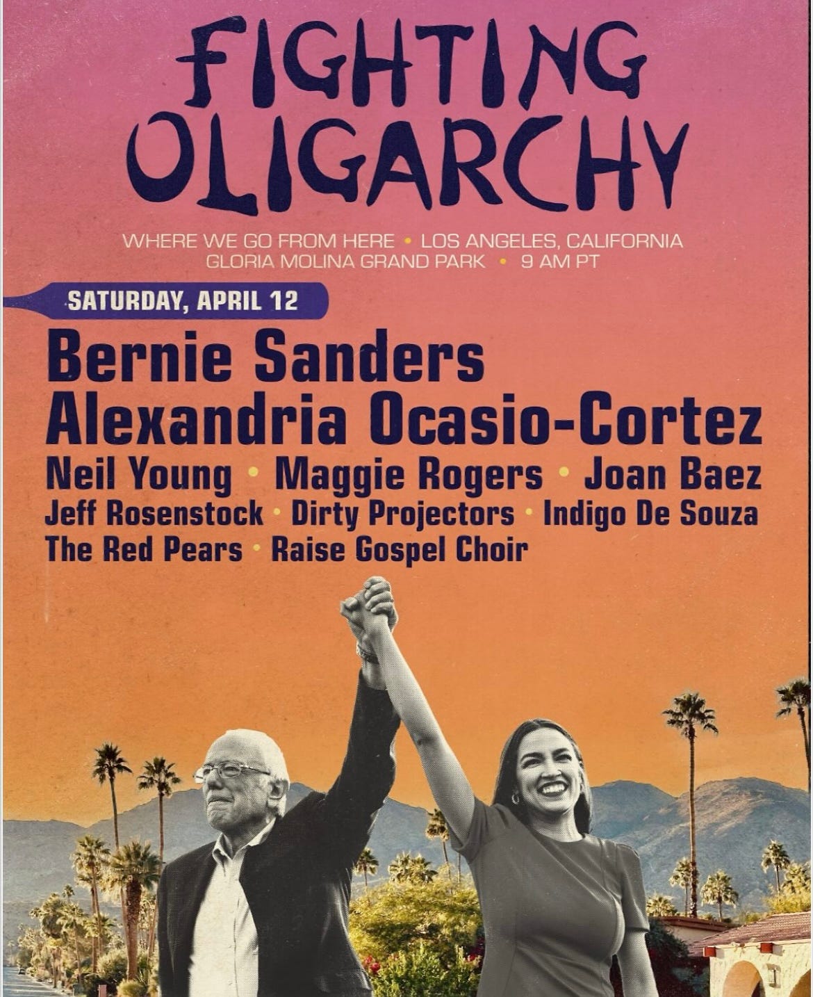 On Saturday, April 12th, Bernie Sanders and Alexandria Ocasio Cortez hosted their own “Bernie-chella” at the Gloria Molina Grand Park in Los Angeles as a part of their ongoing Fighting Oligarchy tour across the country. Neil Young, Joan Baez, and Maggie Rogers were among the performers present at the political rally, which drew in over 36,000 people. Senator Sanders, beloved amongst Gen-Z and younger Millennial voters on the left, took to the stage and addressed the current state of affairs in America.